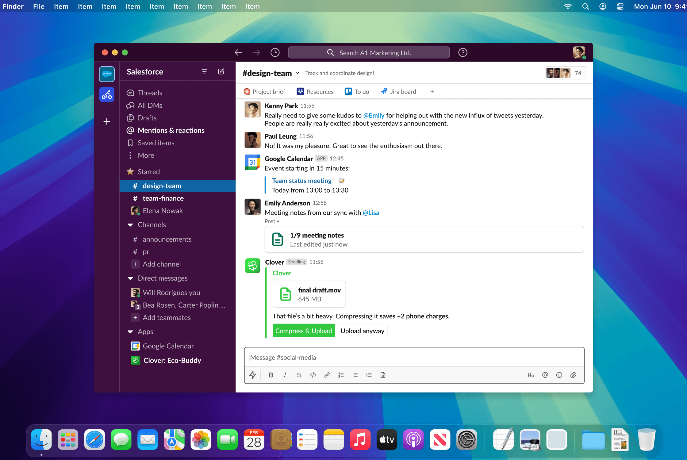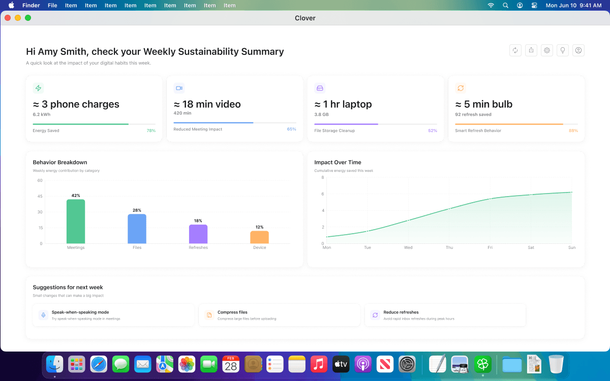 Clover is a sustainability integration for Salesforce that embeds eco-friendly choices directly into employees' daily workflows, empowering 73,000 employees to reduce their digital carbon footprint without disrupting productivity or adding cognitive load.